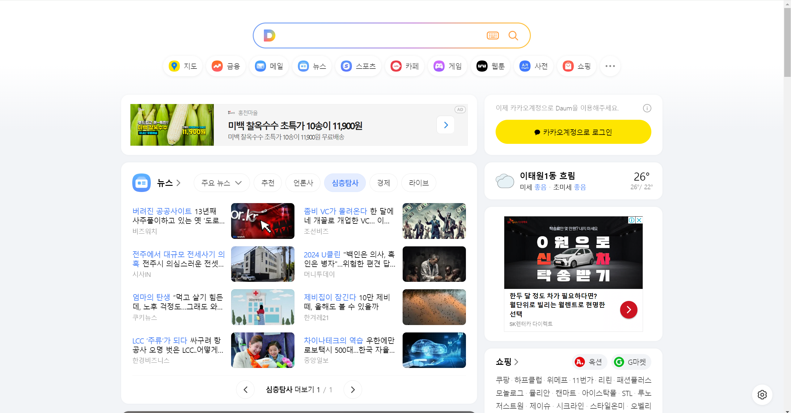 🔹다음(daum.net) 홈페이지에서 '로그인' 버튼을 클릭합니다.