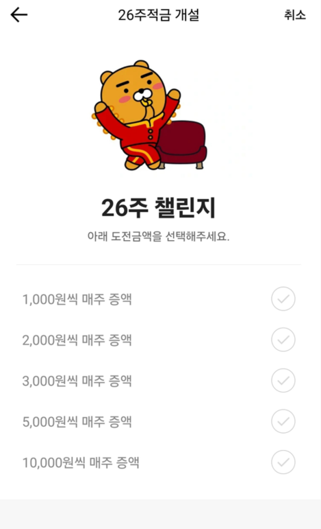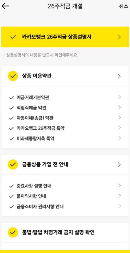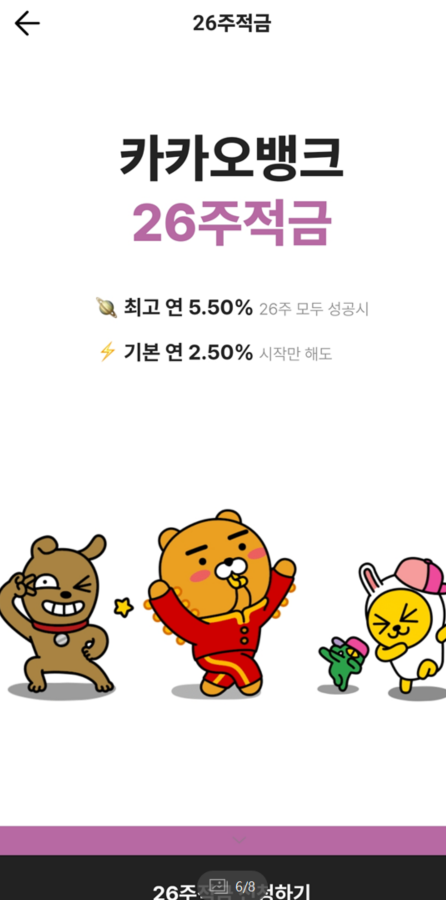 위 버튼을 통해 카카오뱅그 26주 적금 가입하시기 바랍니다.
