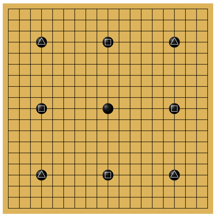 흑돌은 먼저 두는 돌이며, 백돌은 흑돌 다음에 둡니다.