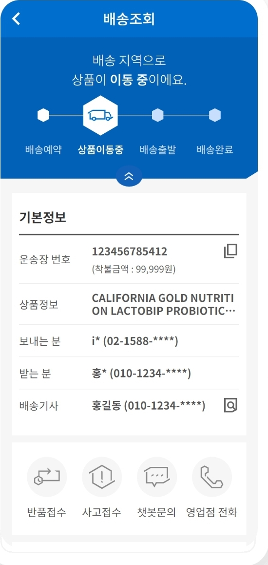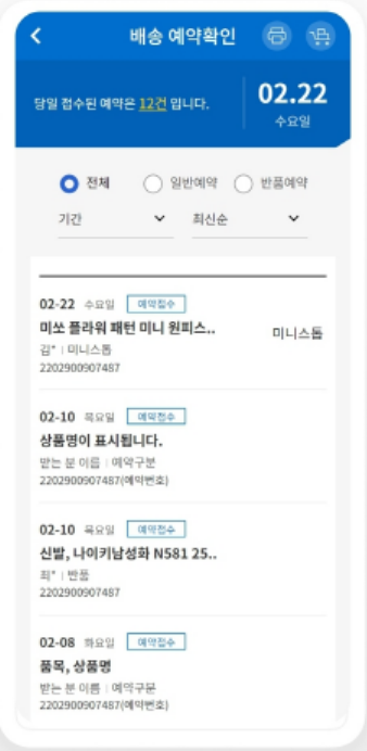 홈페이지에 들어가서 우 상단메뉴 배송조회/예약에 들어가면 아래와 같은 화면이 나오고 운송장 번호를 입력하면 됩니다.