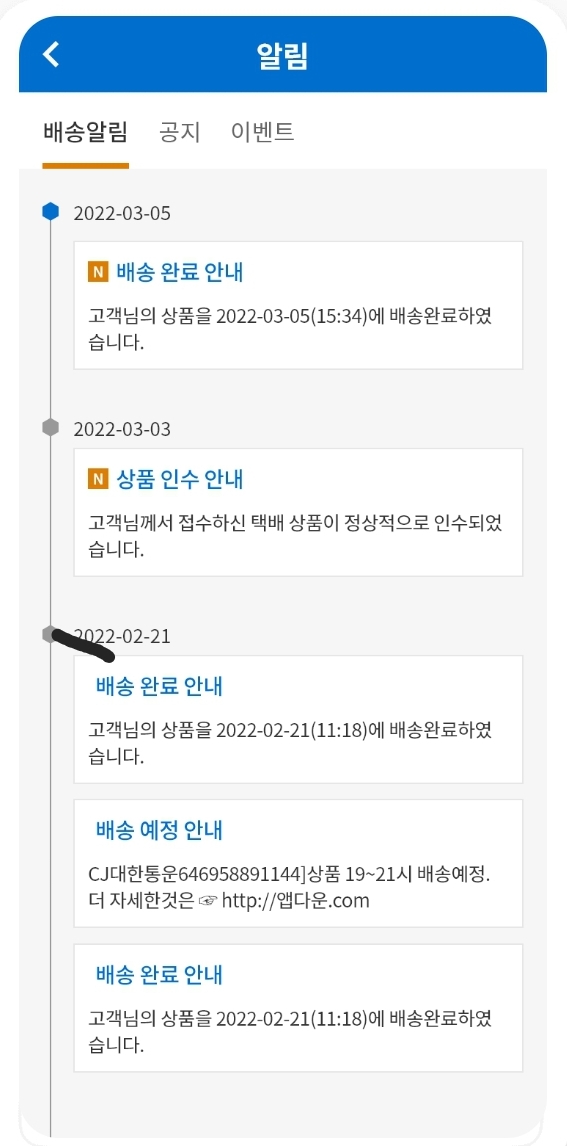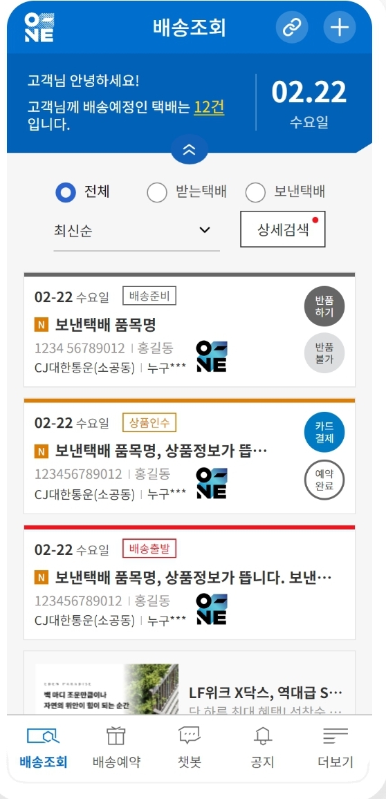 CJ대한통운 앱 이용 택배조회